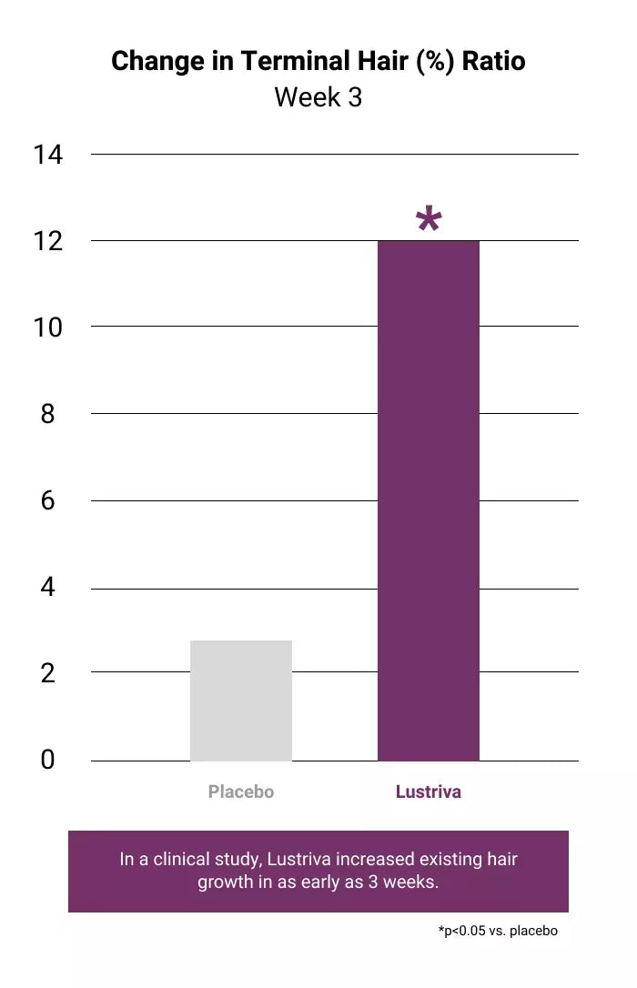 In a clinical study, Lustriva® was shown to increase hair thickness starting at 3 weeks.